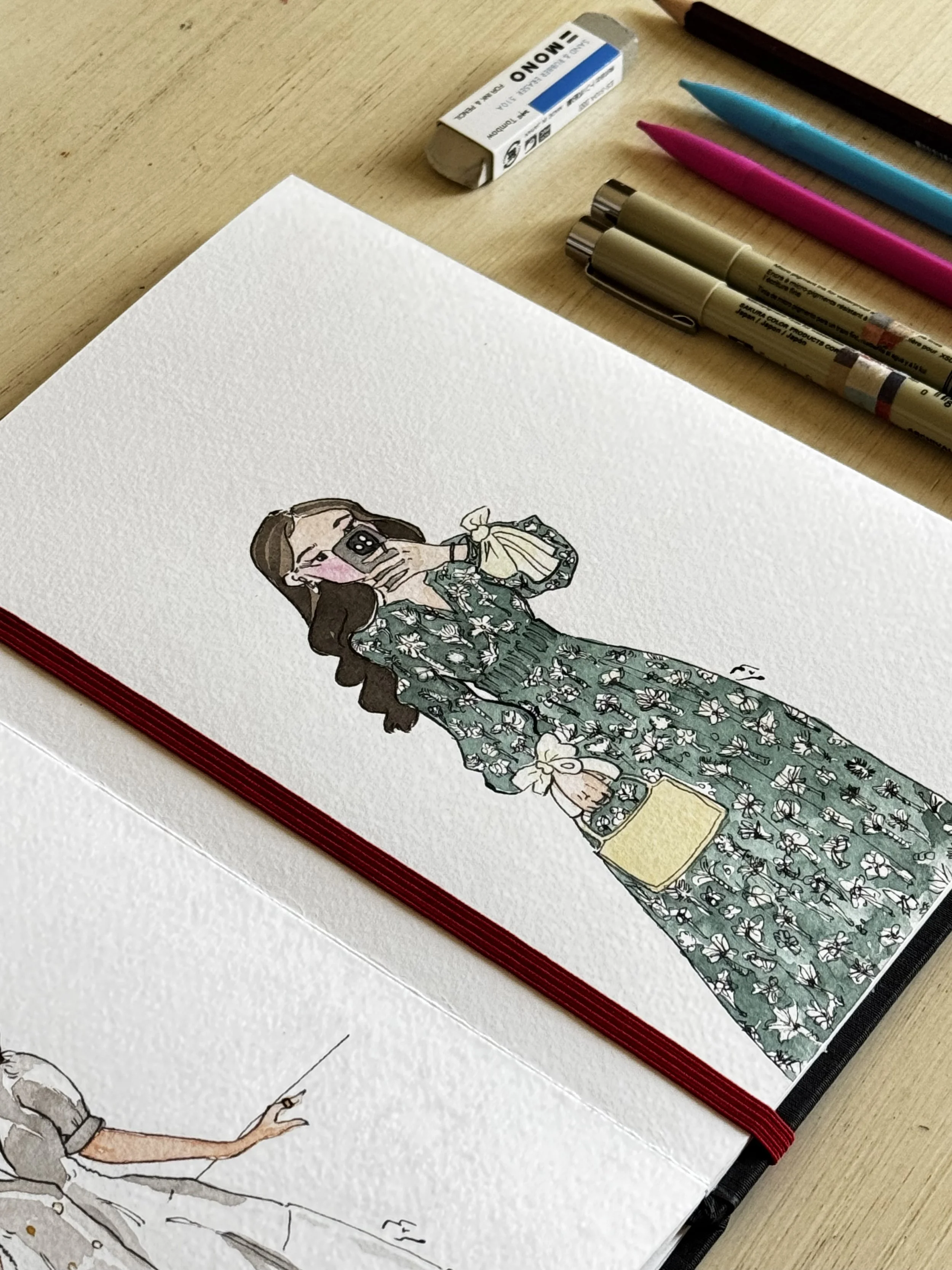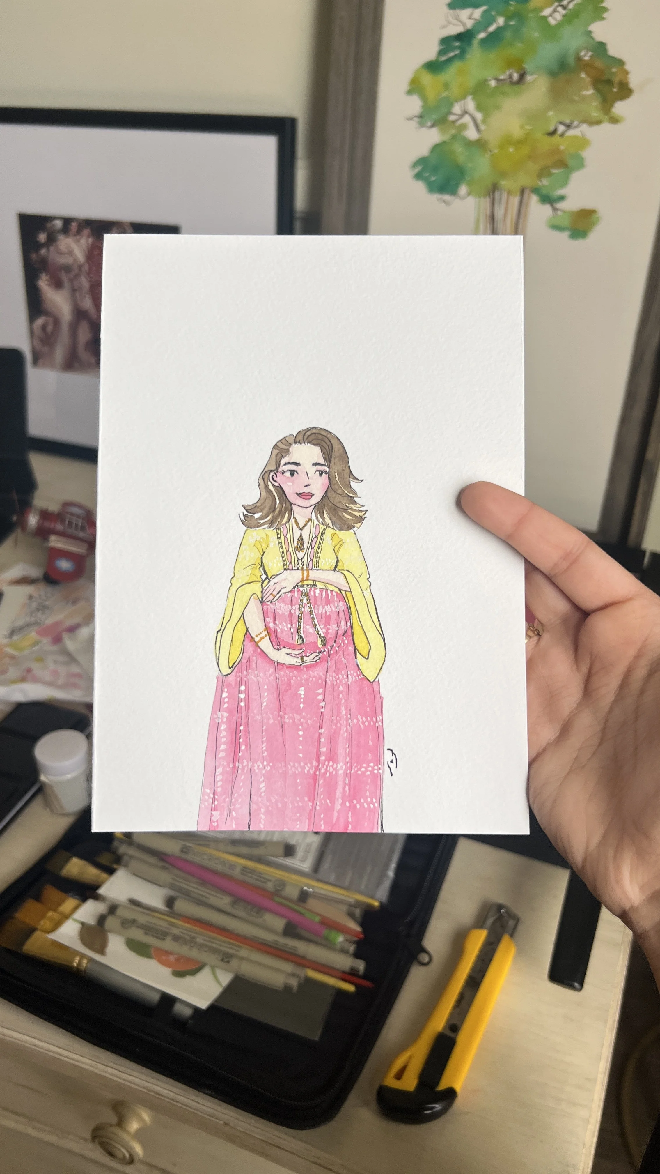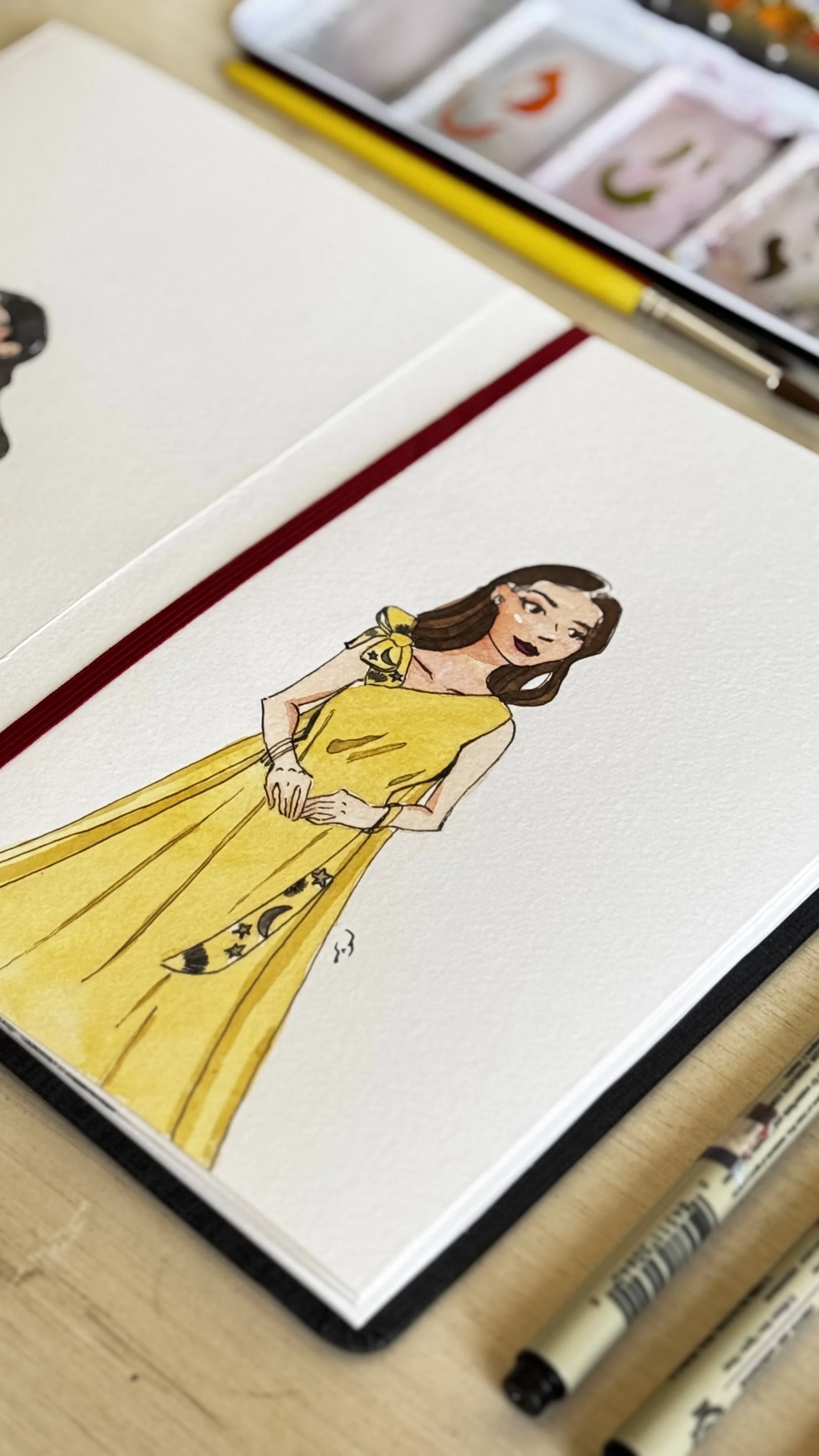 During Ramadan, girls wear the “jalabiya”, a festive traditional dress, usually with lots of details and shapes. I decided to sell customers a very personalized portraits of them wearing the pretty dresses!